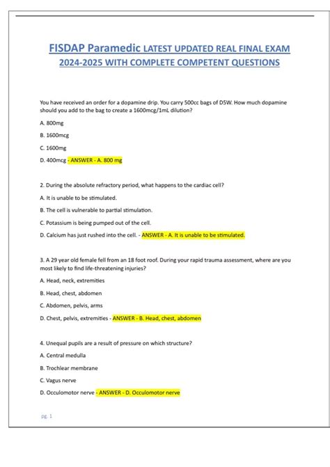 Download paramedic fisdap test answers [PDF] [EPUB] PDF
